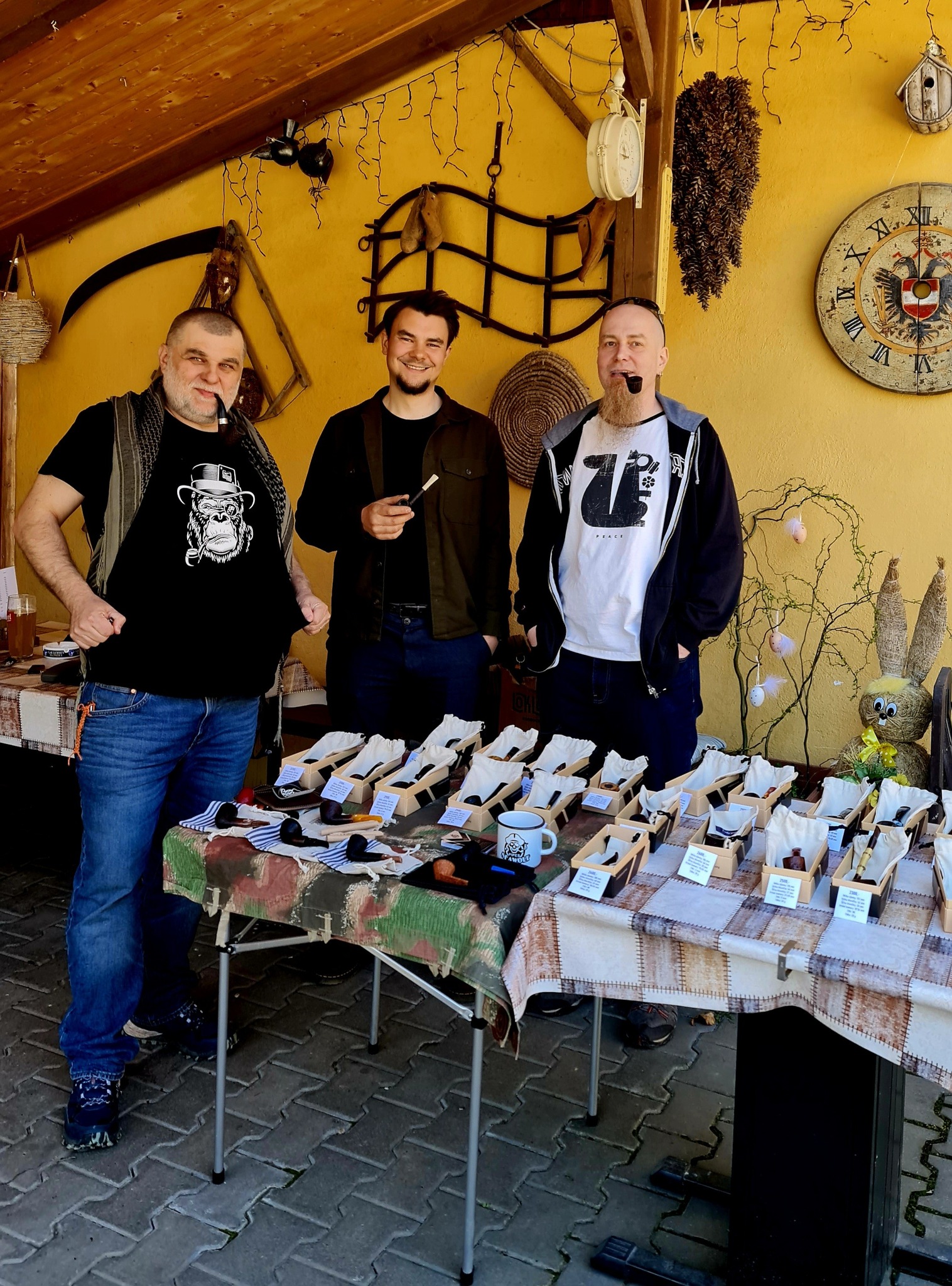 Das Wetter war uns wirklich wohlgesonnen, und so saßen die meisten draußen und plauderten 🙂 Es folgte ein freies Programm, bei dem neben den schönen handgefertigten Pfeifen auch Martin Čermák (Seawolf pipes) und Petr Novák (Petr Novák Pipes) präsentierten.