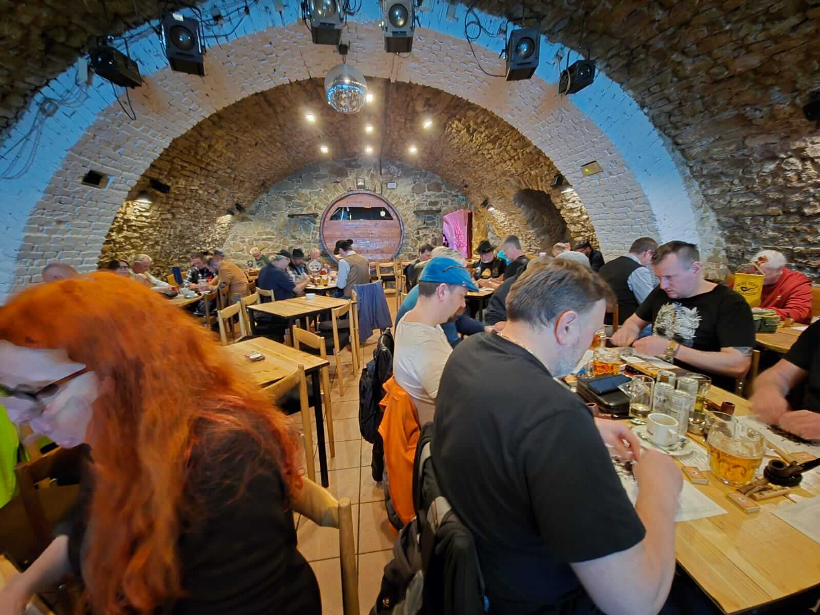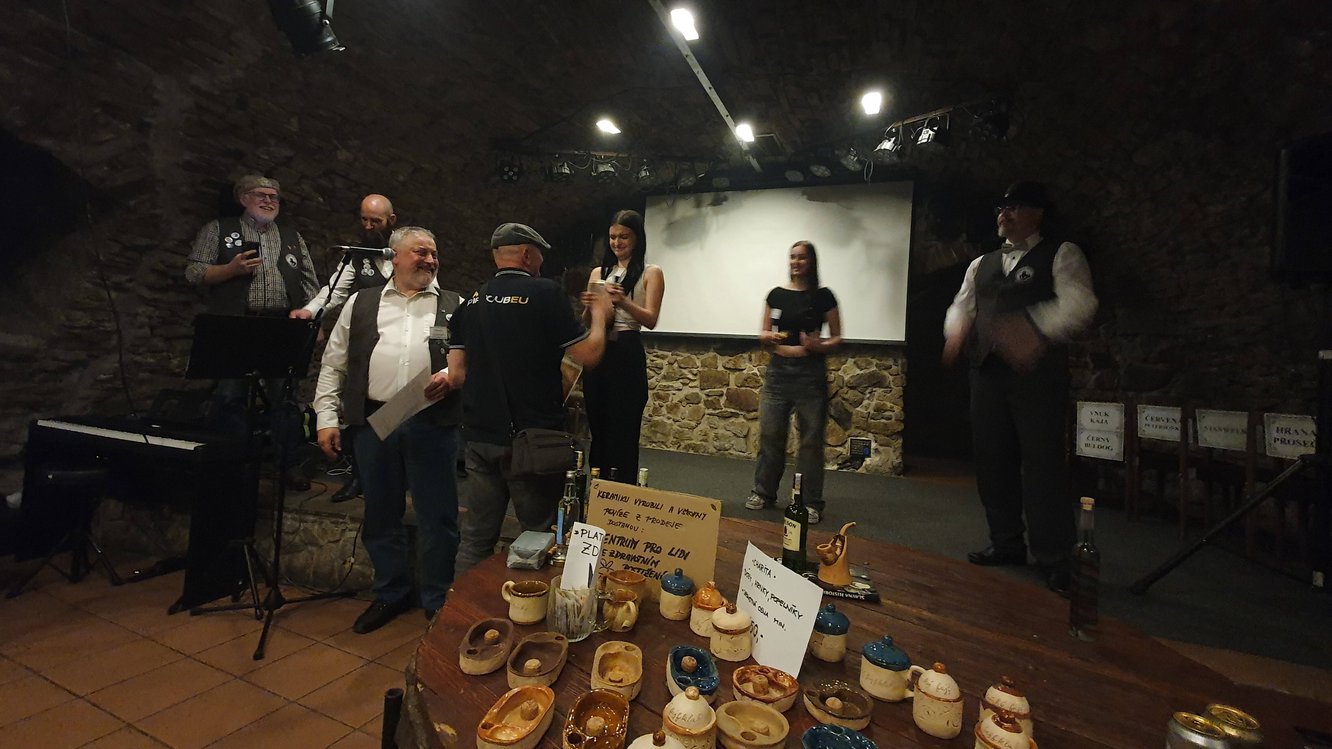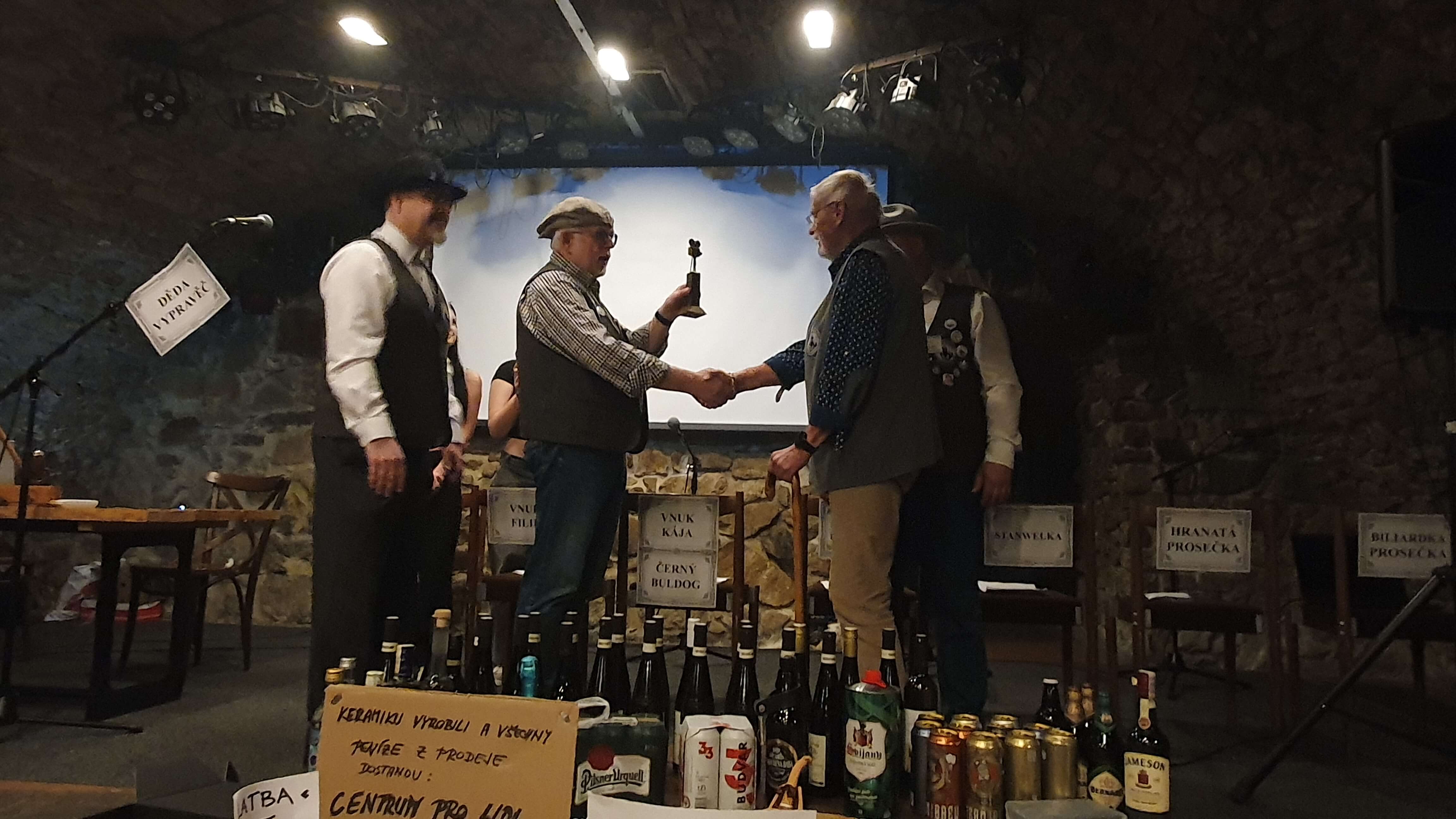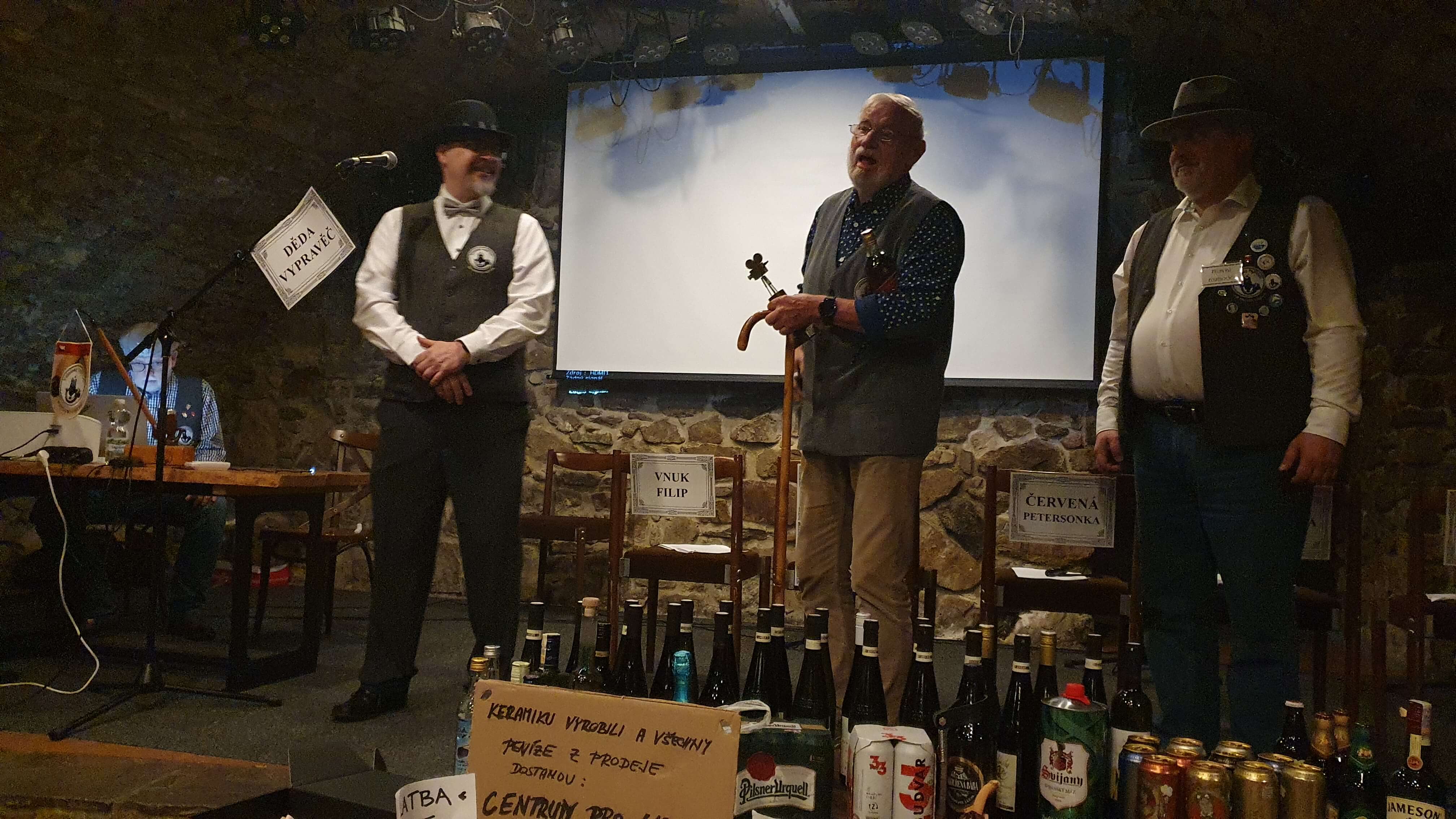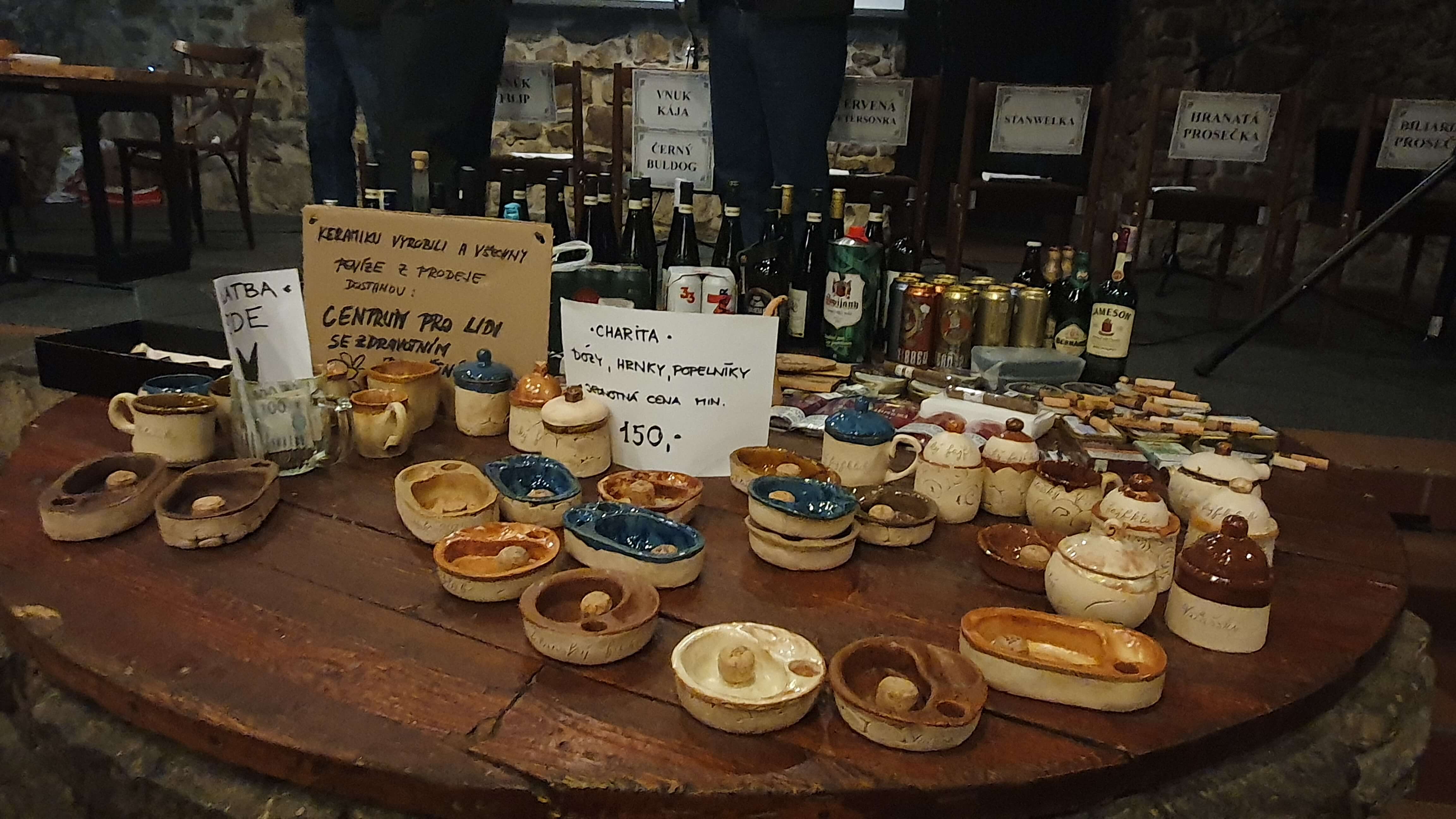 Po příchodu a registraci se většina soutěžících občerstvila gulášem a výbornou Plzní a už se šlo prohlížet ceny. Skvělým nápadem byla možnost si zakoupit krásné dýmkařské keramické popelníky a podpořit tak místní charitativní spolek, mnoho dýmkařů včetně nás tak učinilo.