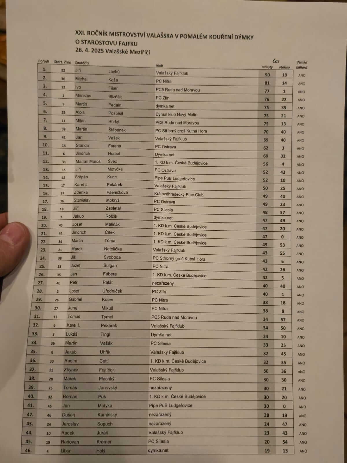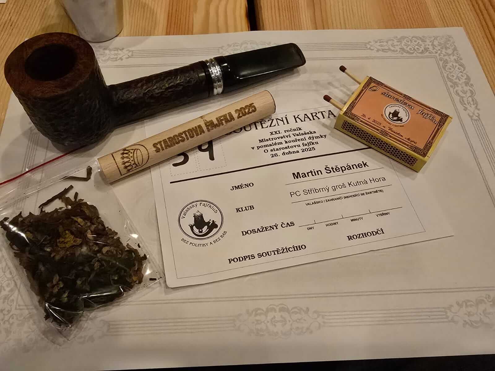 Poté už se rychle blížil start valašského mistrovství v pomalém kouření dýmky. Soutěžním tabákem byl "valašský klubový" 311. Night Rider od Stanislawa. Shodli jsme se u stolu, že nám všem při soutěži chutnal, což je vždy vítaný bonus a nebývá to pravidlem. Nebyl to ale úplně jednoduchý tabák na soutěžení, po dokouření jsme se s mnohými účastníky shodli na tom, že nám zapadal uhlík.