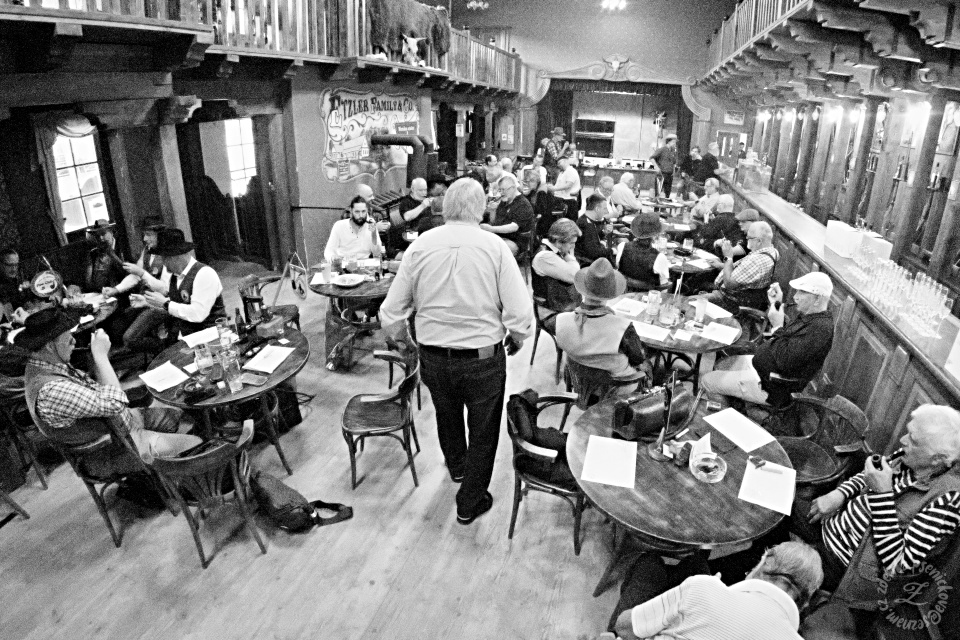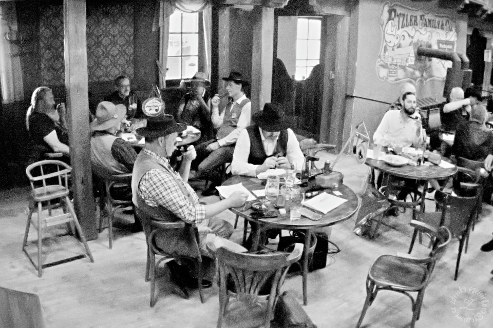 Při vstupu do saloonu, kde byl slyšet cinkot nápojového nádobí v rušném hovoru a modravý dým se vznášel proklatě nízko, bylo zřejmé, že pro čínský tabák zde není místo. Proto místní šerif Břéťa Kotulán se svými pomocníky vybral osvědčený Davidoff Scottish Mixture. Před samotnou soutěží byla klepáním dusátek vzdána pocta dvěma nedávno zesnulým kolegům a kamarádům dymkařům. Pak už soutěž po vysvětlení pravidel a přípravě tabáku mohla začít.