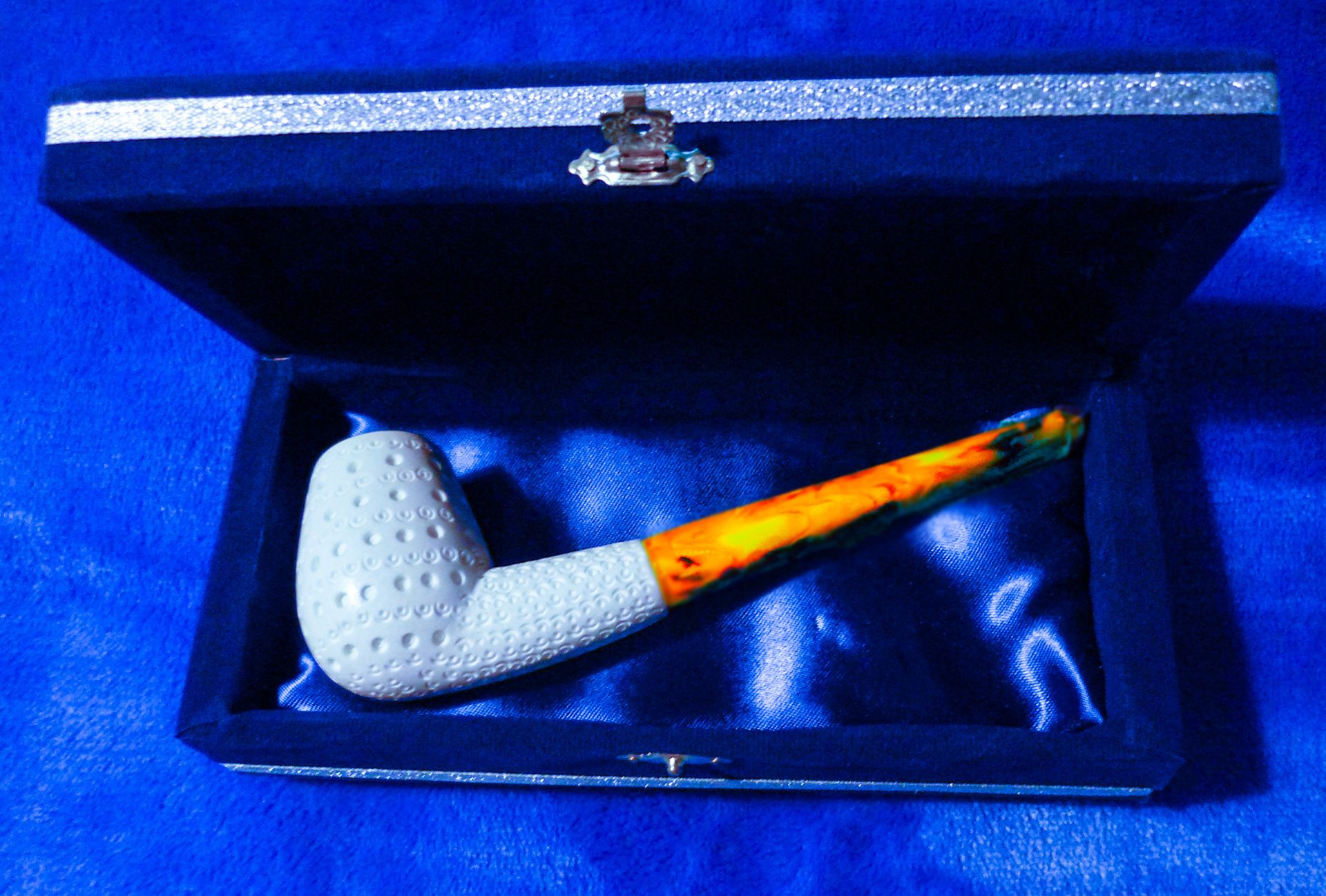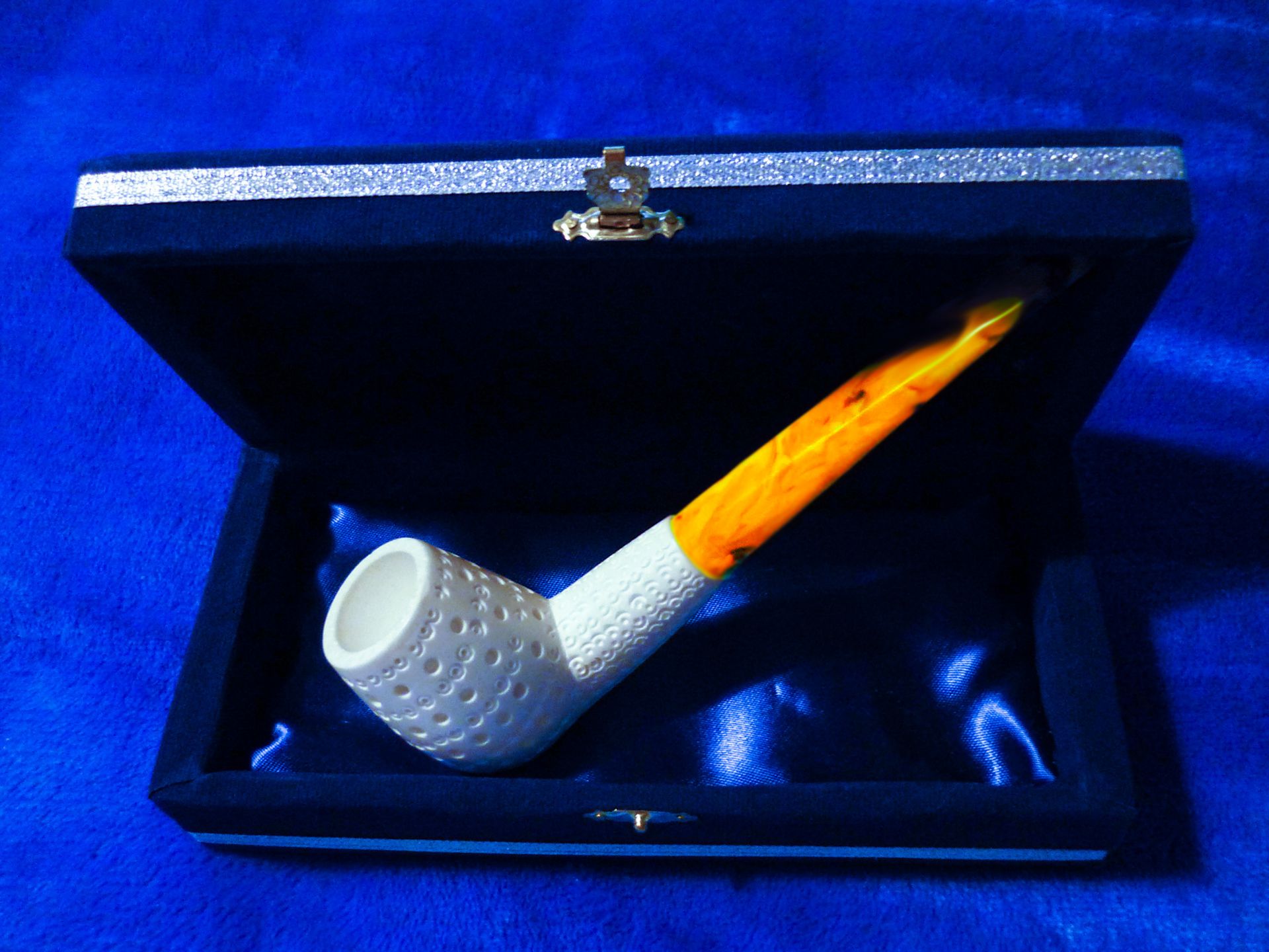Prodám novou dýmku pěnovku-material meerschaum (mořská pěna), délka-152 mm, výška hlavičky-47 mm, šířka hlavičky-35 mm, vrt hlavičky-20 mm x 32 mm, náustek-napodobenina jantaru, včetně dárkové krabičky.