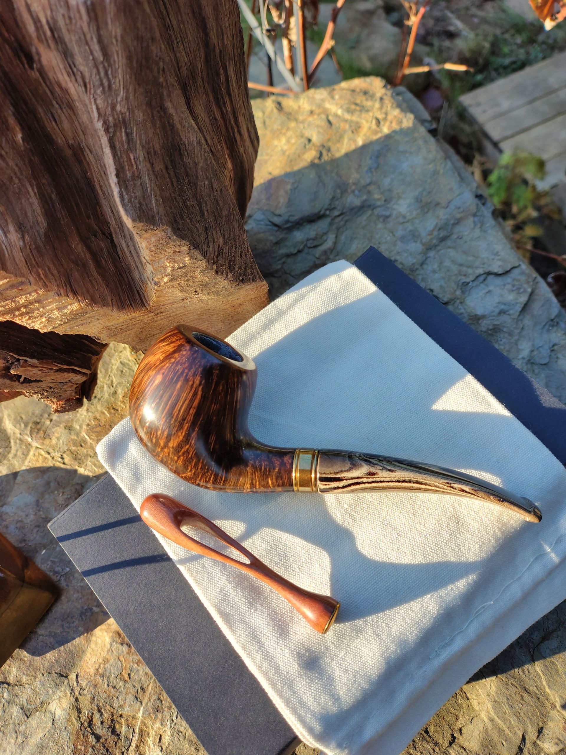 Dýmka z mé dílny , hladké provedení . Stojánek také k dispozici 300 Kč .Dusátko je prodané.