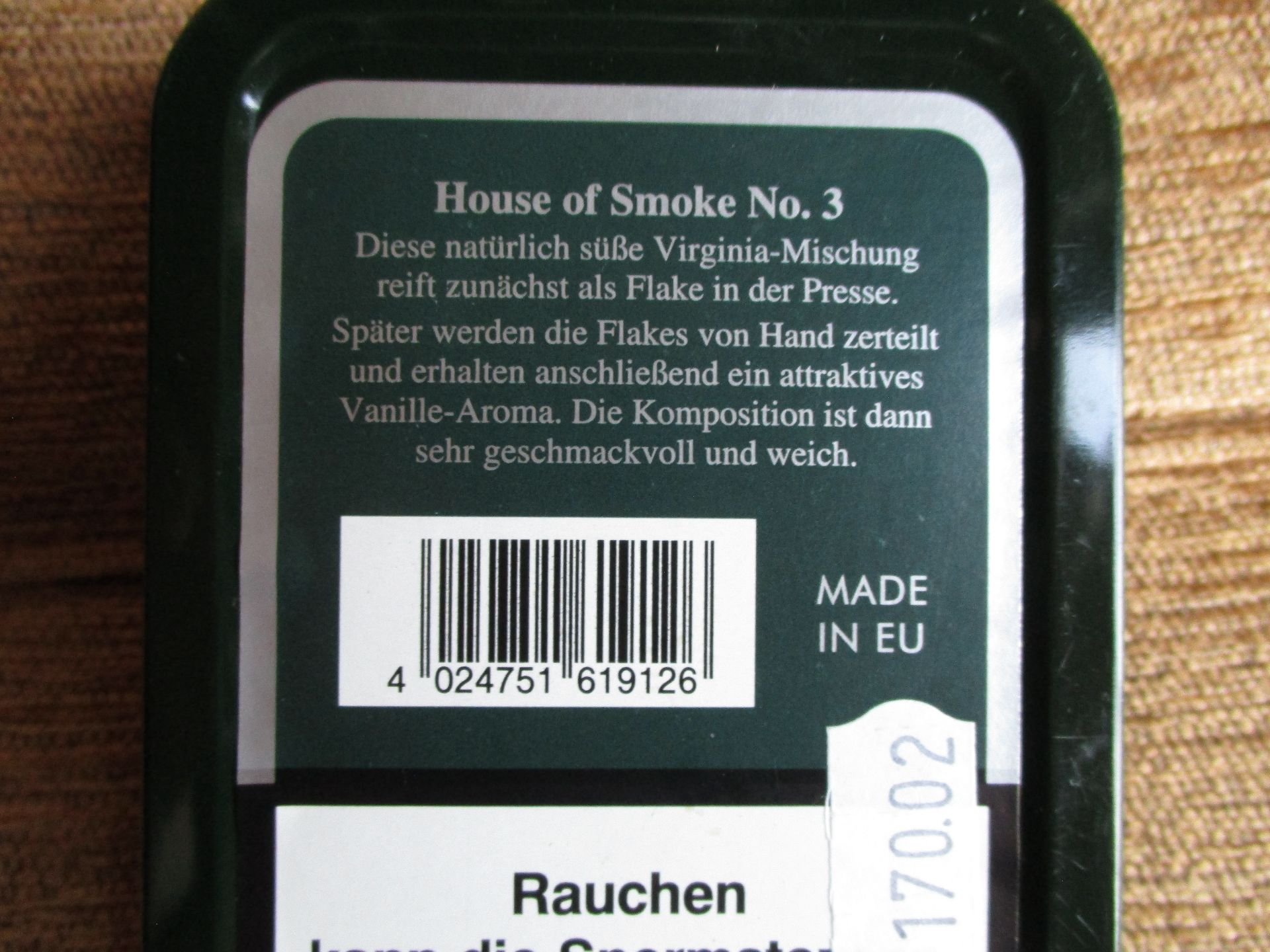 House of Smoke No3 Vynikajúci fajkový tabak 50 g Archiv 2010 úžasný aromatik